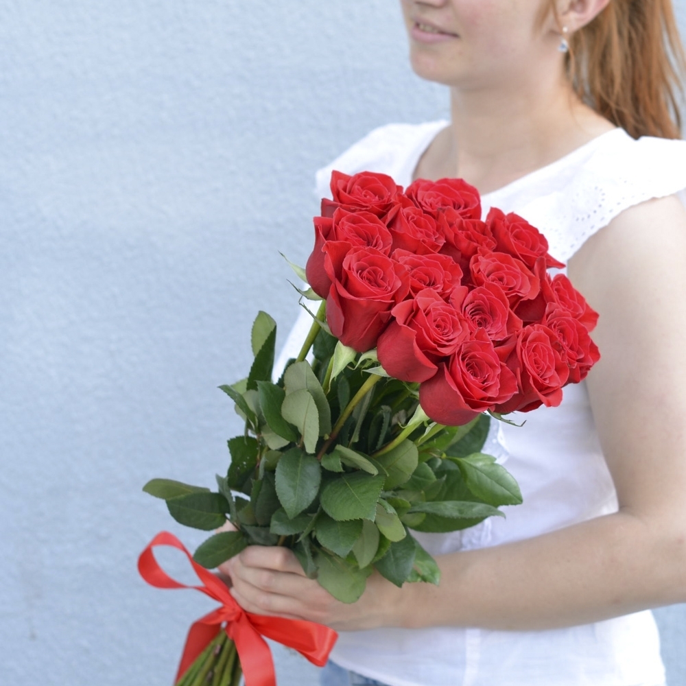 15 красных эквадорских роз перевязанных атласной лентой