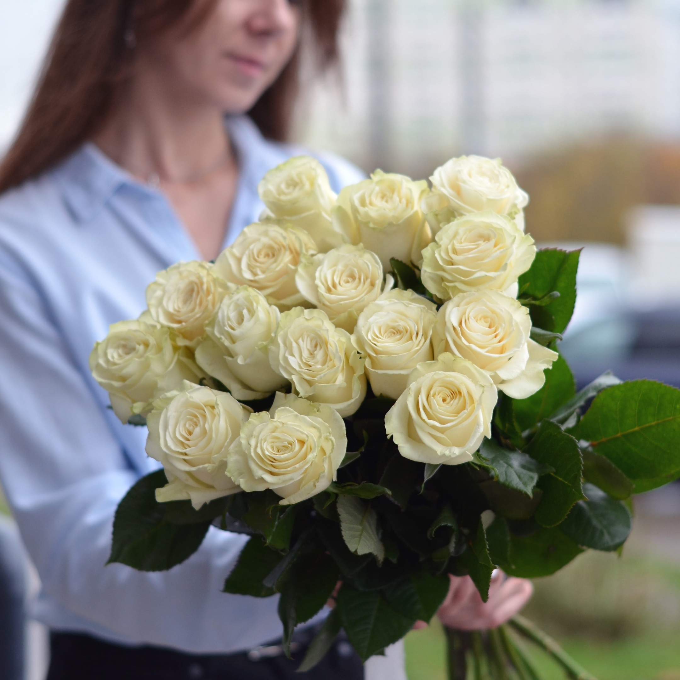 15 белых роз Эквадор