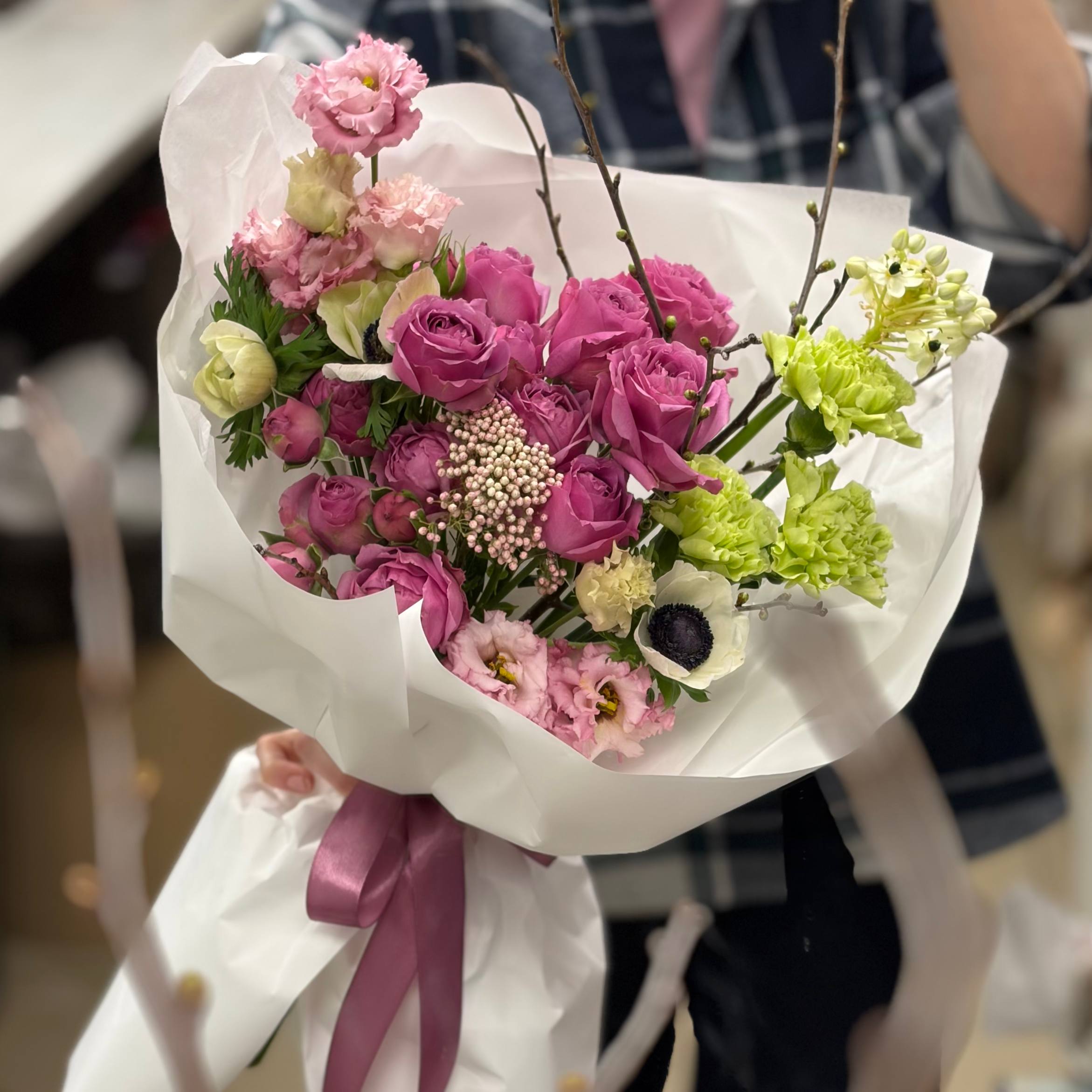 Свяжитесь с нами через чат на сайте, или по телефону, если хотите изменить состав букета, увеличить или уменьшить количество цветов в составе.