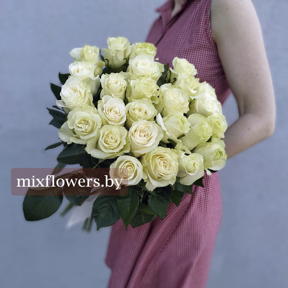 Букет "Шарм" состоит из 25 белых роз, оформленных атласной лентой.