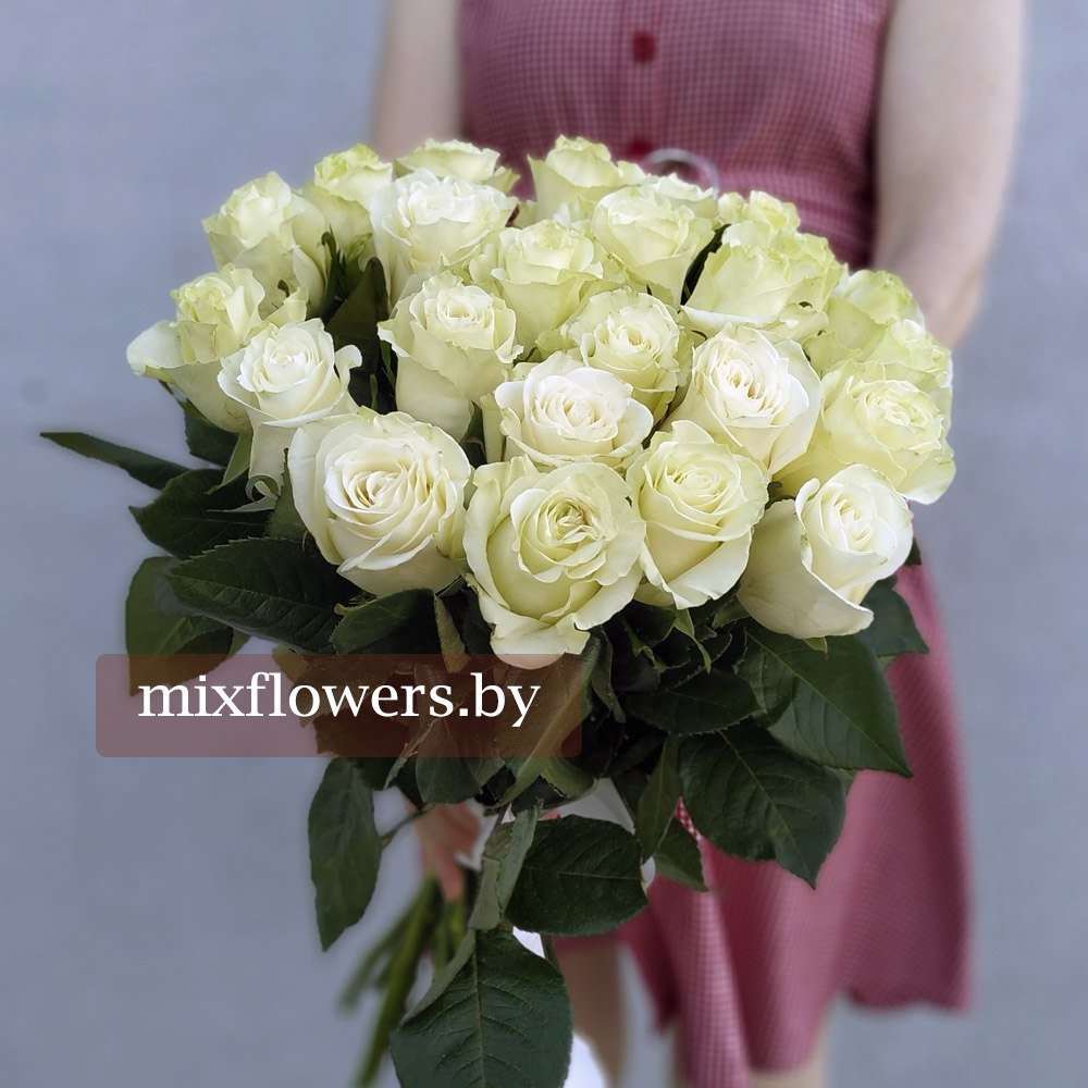 Букет "Шарм" состоит из 25 белых роз, оформленных атласной лентой.