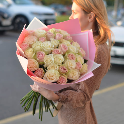 Букет роз "Зефирное облако" 35 роз Эквадорские розы