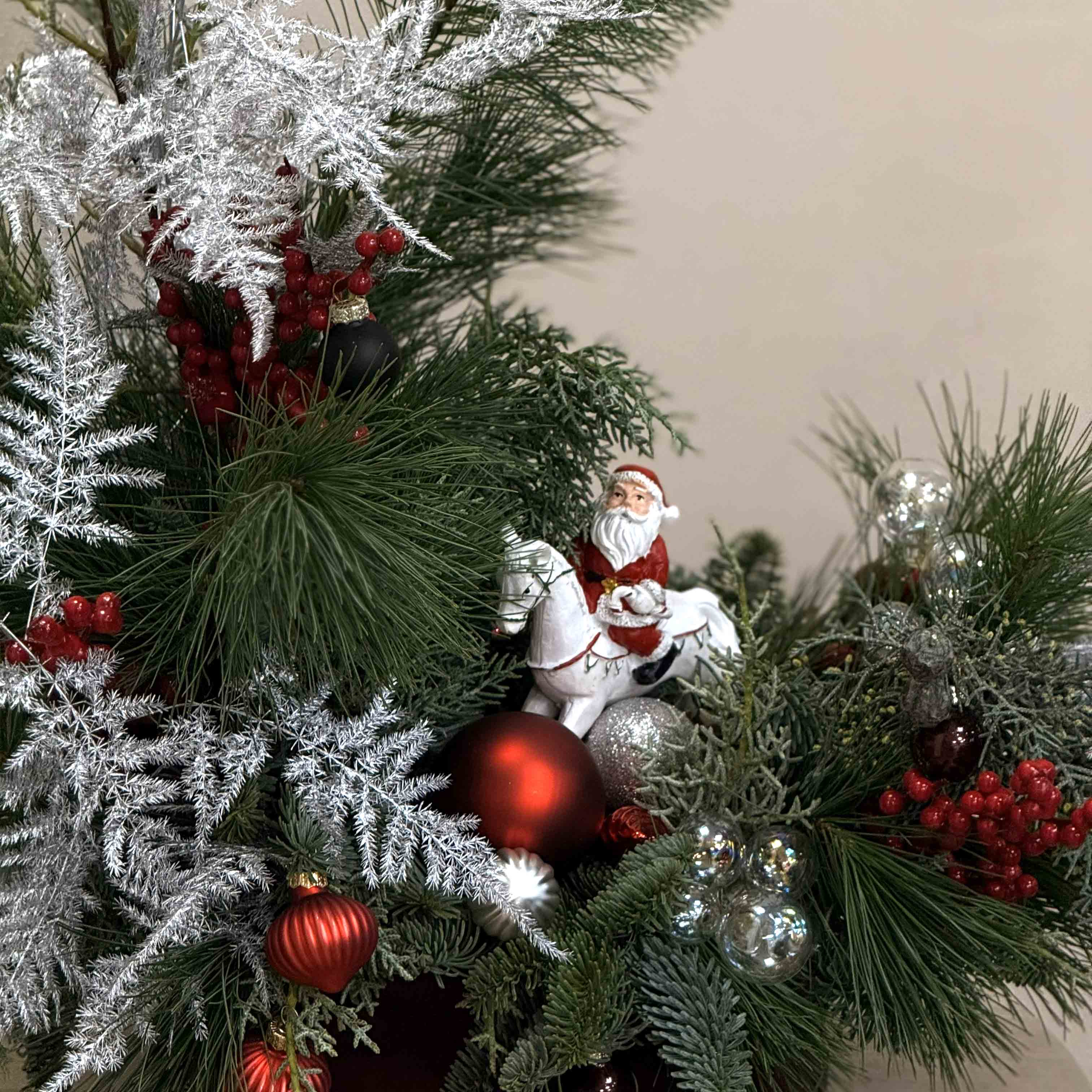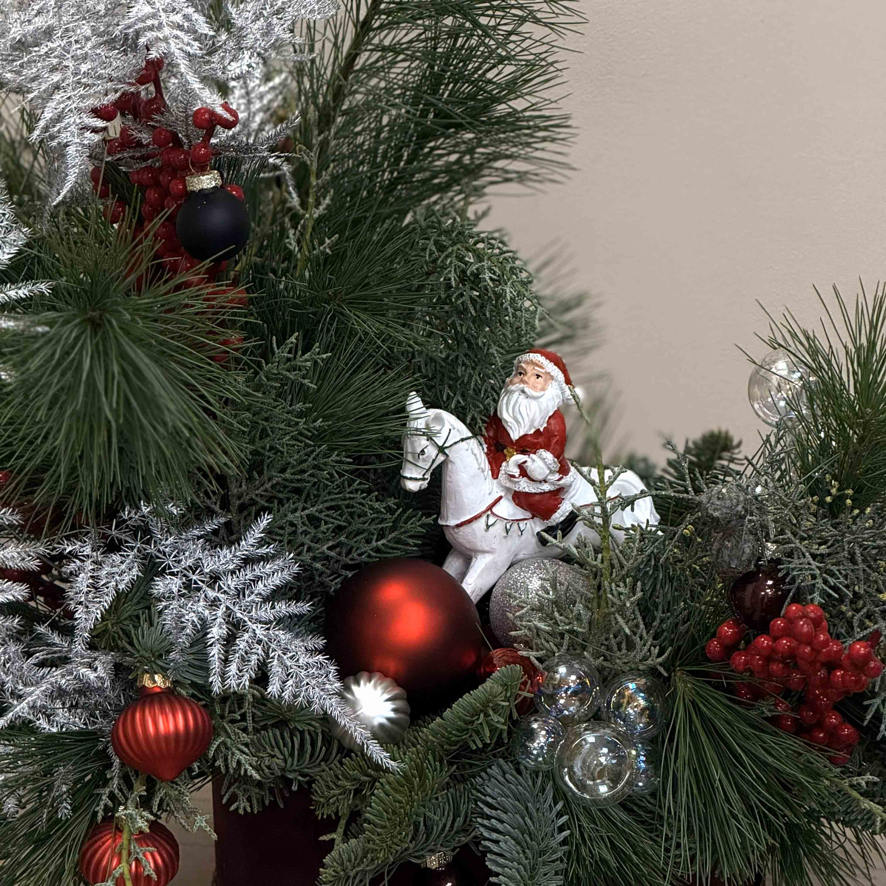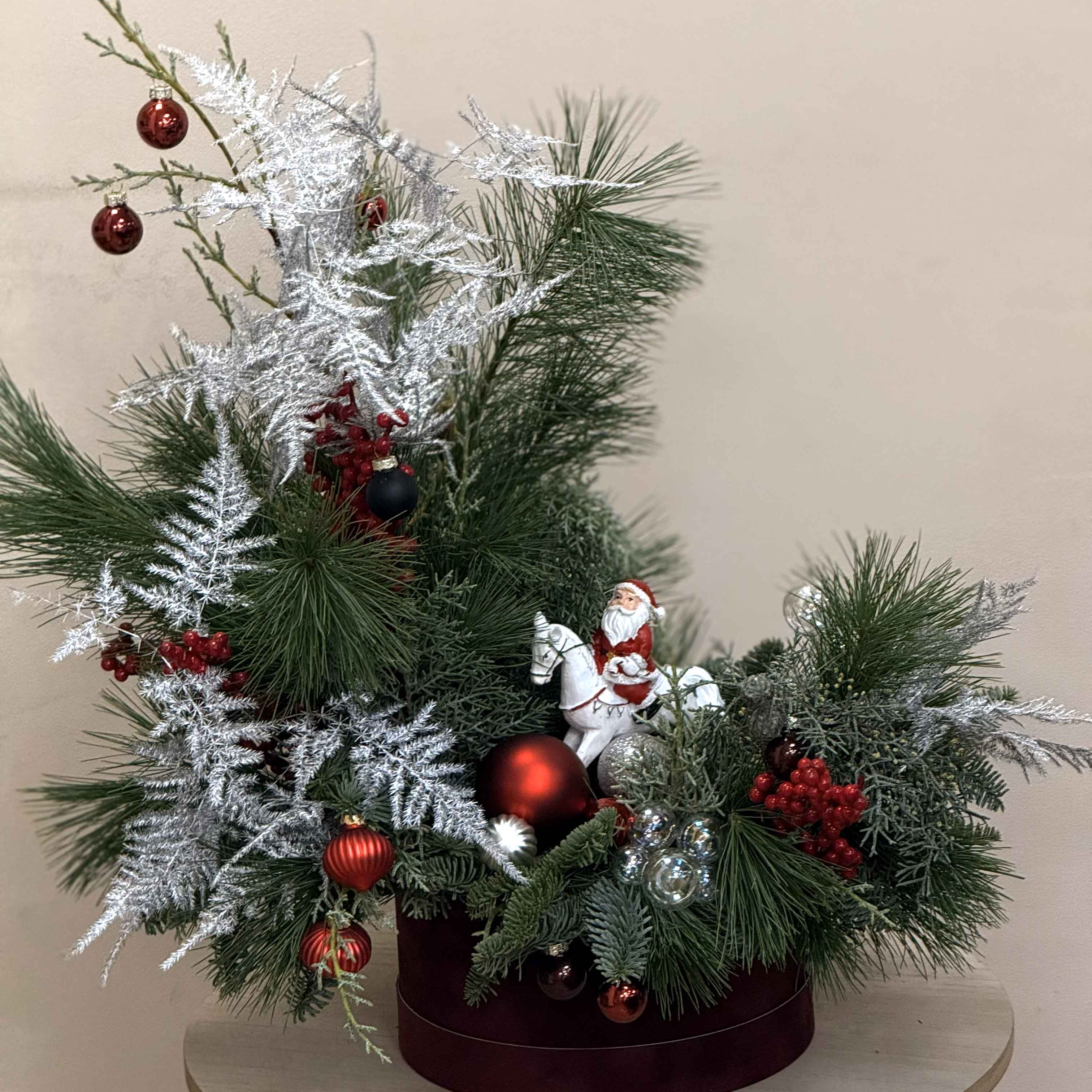 Состав: илекс, пихта, новогодний декор, ящик и флористическая губка
