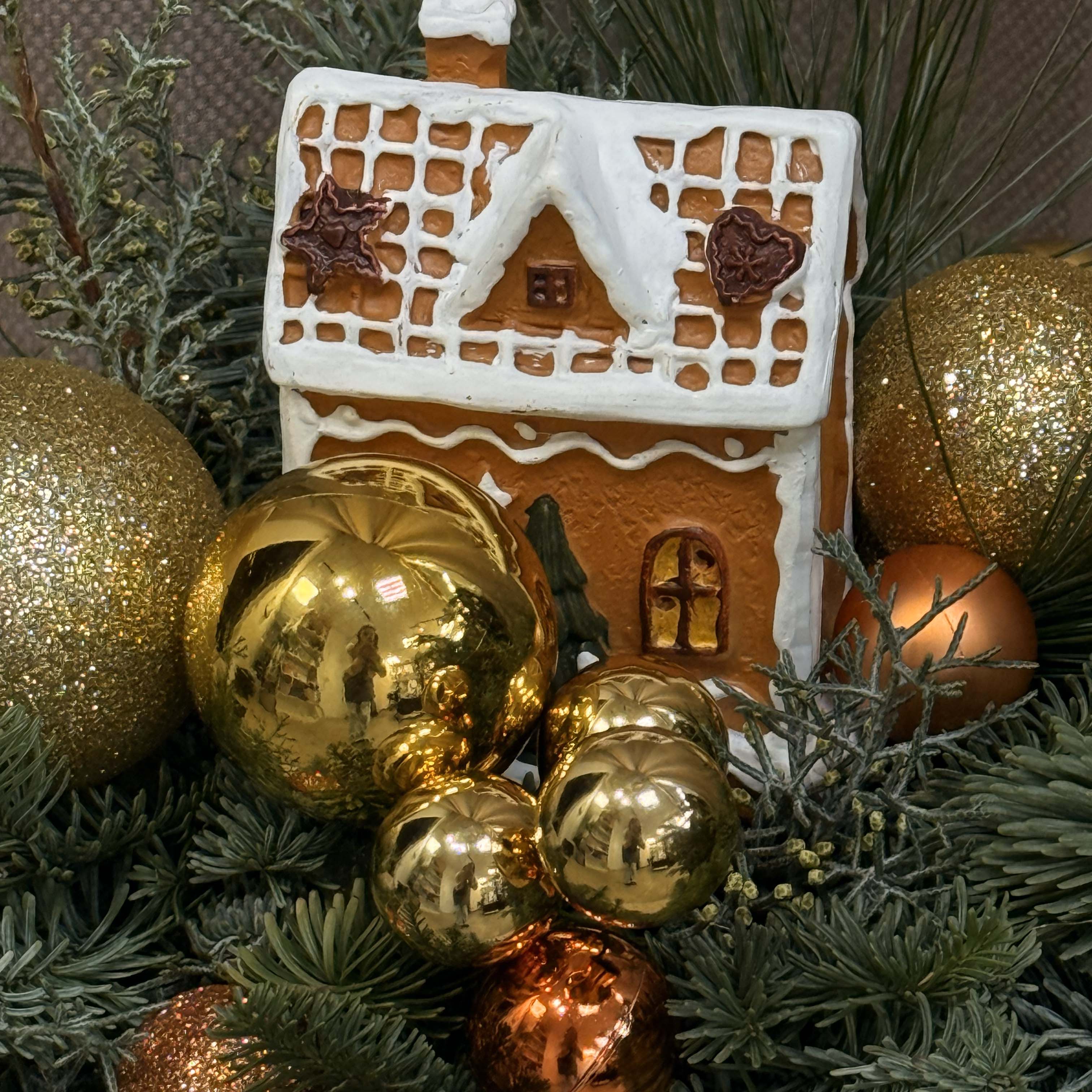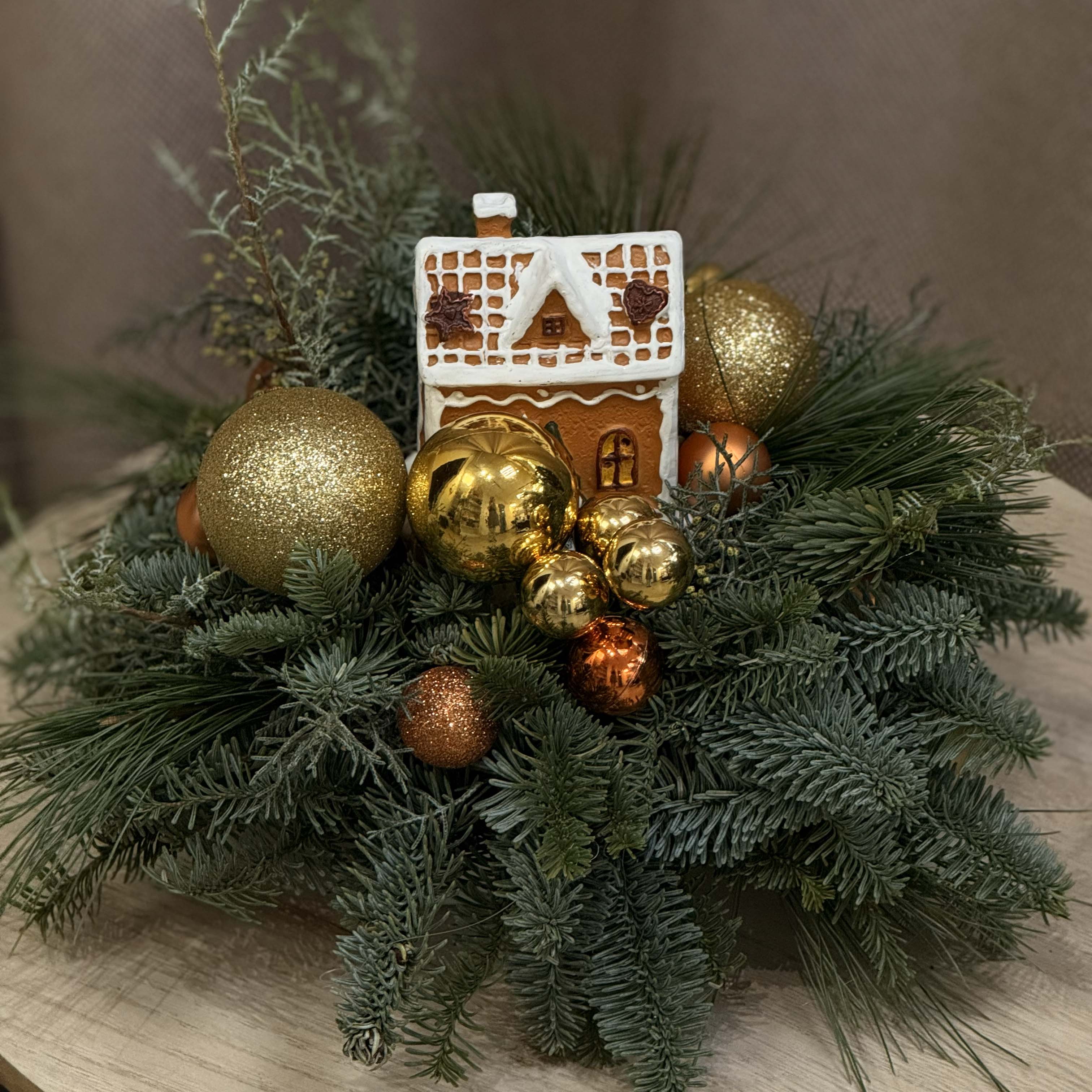Состав: илекс, пихта, новогодний декор, подставка и флористическая губка