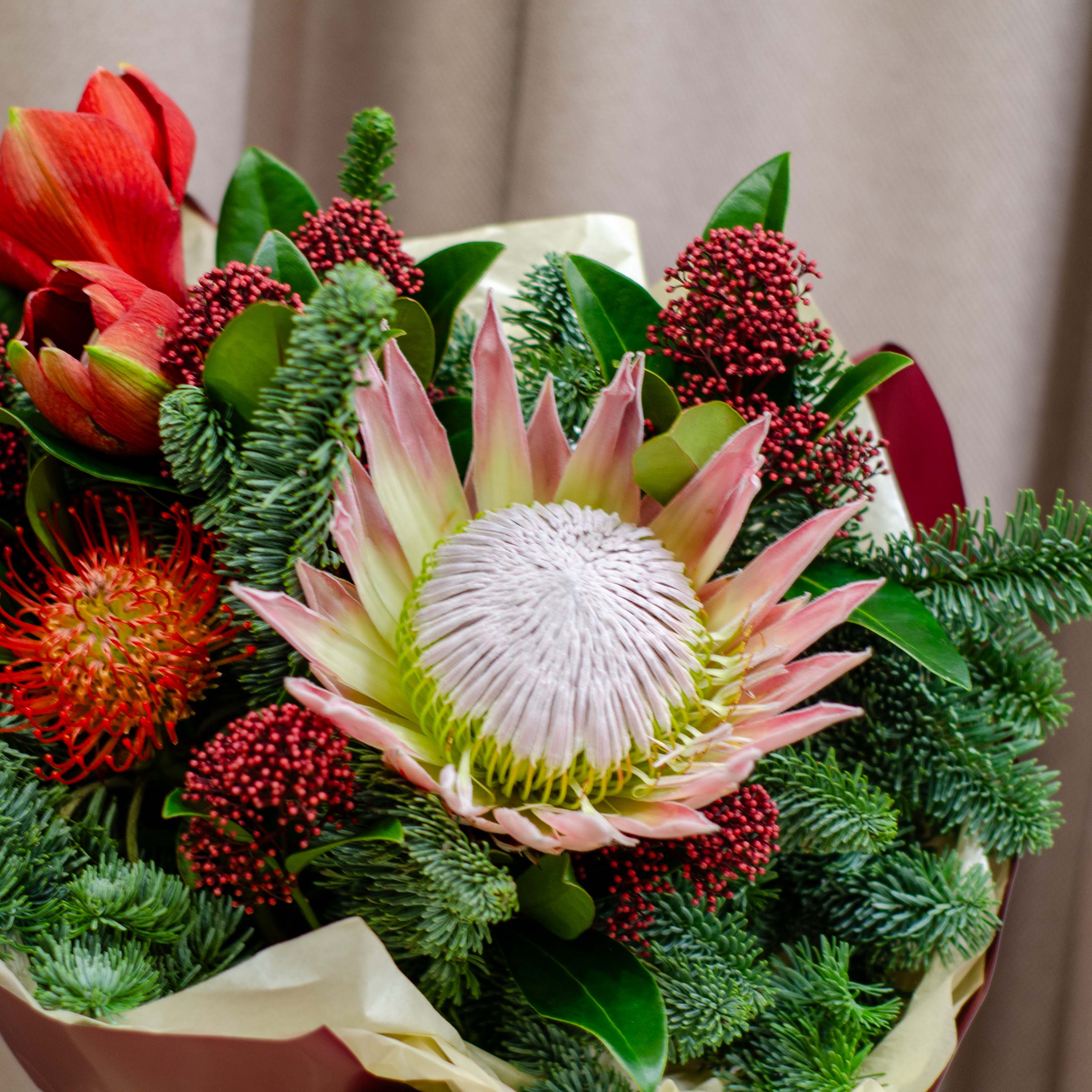 Состав: амариллис, скимия, протея, леукоспермум, пихта и упаковка